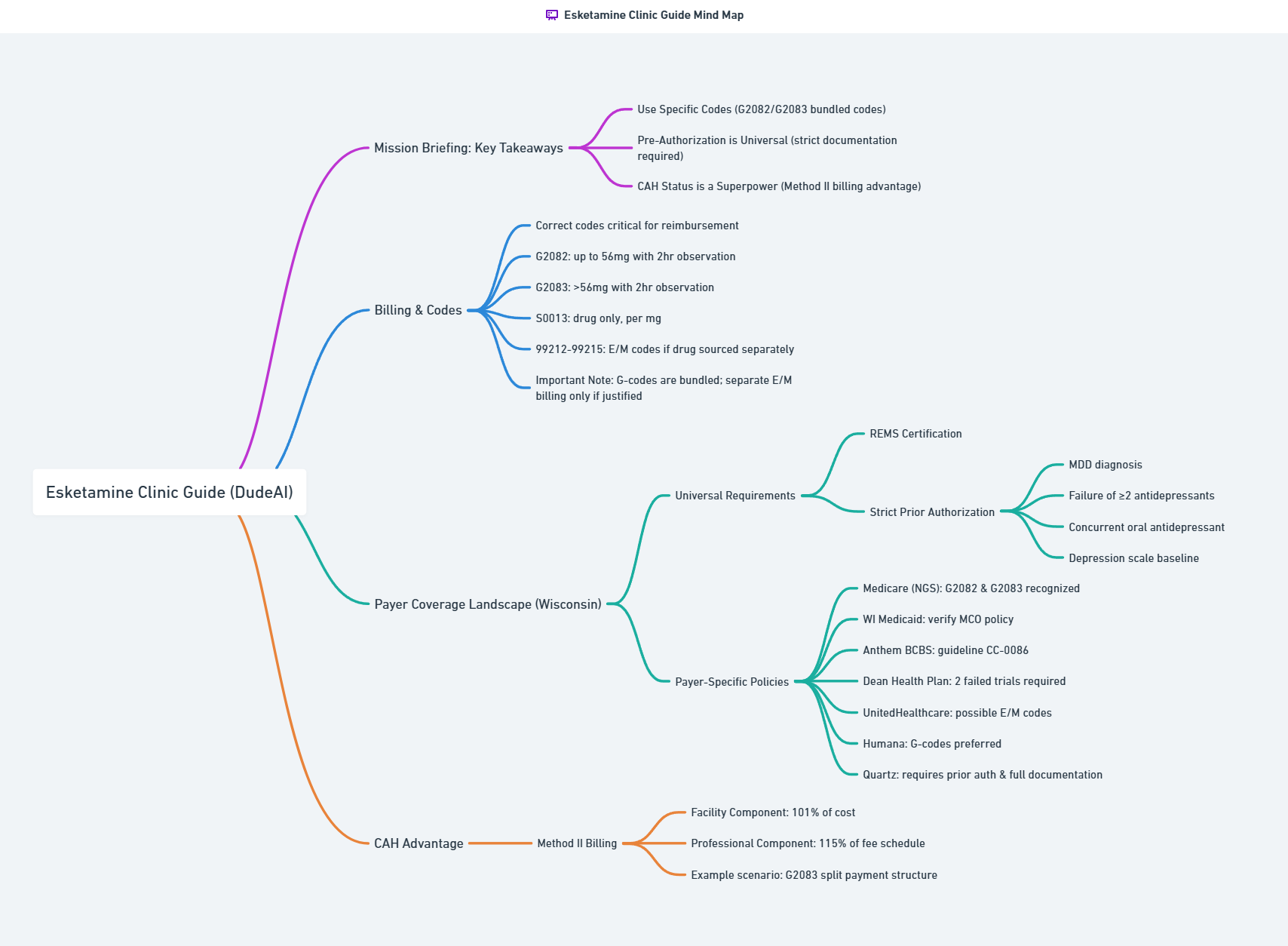 | Medicare & Most Payers | G2082 | Office or other outpatient visit for the evaluation and management of an established patient that requires the supervision of a physician...and provision of up to 56 mg of esketamine nasal self-administration, includes 2 hours post-administration observation. |